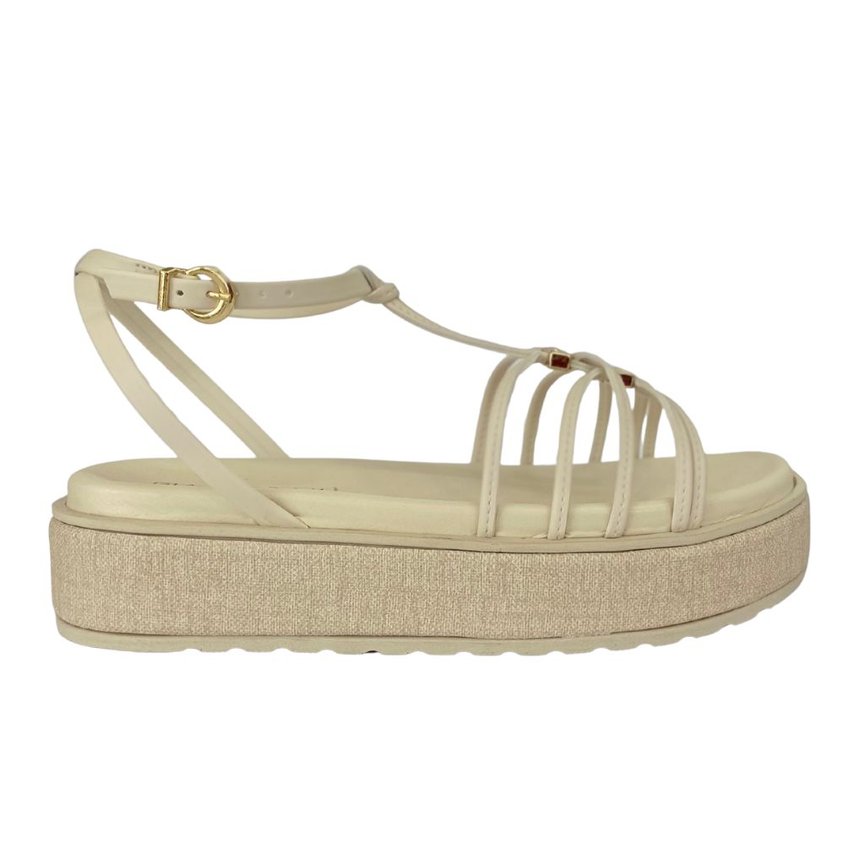 A sandália papete Ramarim Flatform Coconut é a escolha perfeita para quem busca unir tendência, conforto e sofisticação. Confeccionada com materiais de alta qualidade, possui tiras finas e delicadas que conferem leveza ao visual, além de enfeite dourado na parte frontal, agregando charme e elegância. O modelo conta com salto flatform de 4 cm, que oferece altura na medida certa e estabilidade ao caminhar. A palmilha macia garante máximo conforto, enquanto o fechamento por fivela dourada no tornozelo possibilita cinco níveis de ajuste, proporcionando um calce personalizado e seguro. O detalhe em tecido no solado acrescenta um toque sofisticado e moderno, ideal para compor looks casuais ou mais elaborados com um ar despojado e feminino. Leve, versátil e cheia de estilo, a sandália papete Ramarim é perfeita para acompanhar seus dias de verão com elegância e praticidade. Aposte e sinta o conforto e o estilo da Ramarim em cada passo!